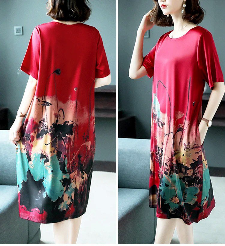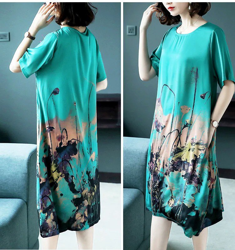 ชุดเดรสผ้าไหมเย็น